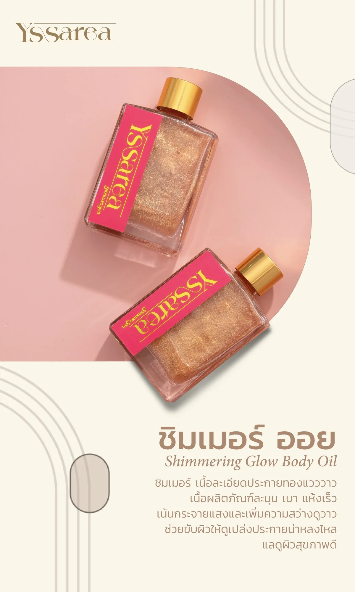 เนื้อบอดี้ออยล์ ชิมเมอร์ของอิสรีย์ยา มีความบางเบาไม่เหนียวเหนอะหนะ!! และที่สำคัญไม่ทิ้งคราบมันเหนียวไว้บนผิวเลยเเละยังมีกลิ่นหอมติดทนนานอีกด้วย